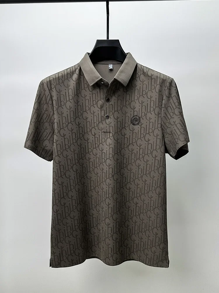 Summer New High-end Silk Short Sleeved Polo Shirt for Men’s Luxurious Embossed Casual Fashion Comfortable Breathable Cool Top