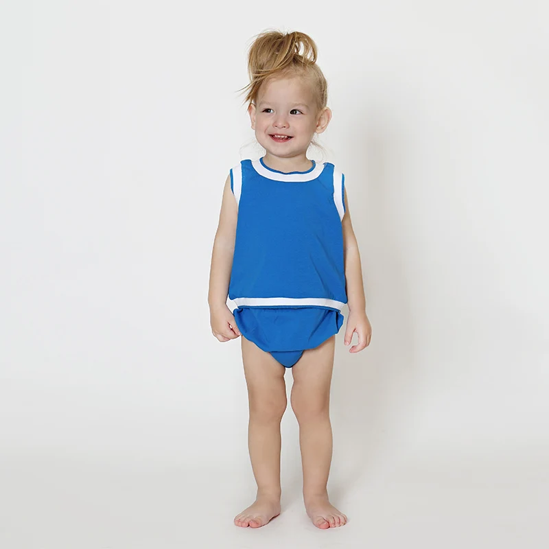 Summer/spring family set royal blue family set boy and girl dress/skirt/t-shirt/baby set stripes edge thin ribbed material