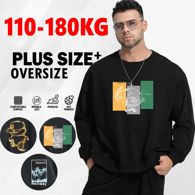 Sweatshirt Pullovers Men Oversized Sweater Plus Size 6XL 7XL 8XL Man Round Neck Long Sleeve Printed Loose Tops Big Size Clothing