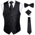 Vests For Men Slim Fit Mens Wedding Suit Vest Casual Sleeveless Formal Business Male Waistcoat Hanky Necktie Bow Tie Set DiBanGu