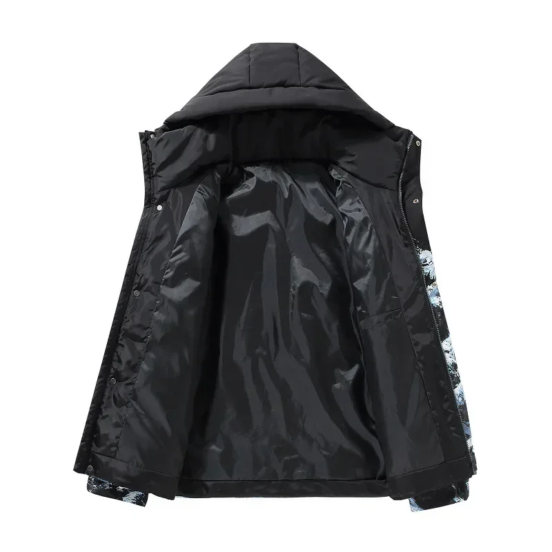 Men Hiking Down Cotton Jacket Hooded Lightweight Parkas Zip Pocket Fashion Outerwear Casual Padded Jacket and Coat Men Winter