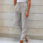 Be the first to review “Women Cotton Linen Pants Summer Female High Elastic Waist Drawstring Pocket Beachwear Holiday Straight Trousers JYFS-1044” Cancel reply