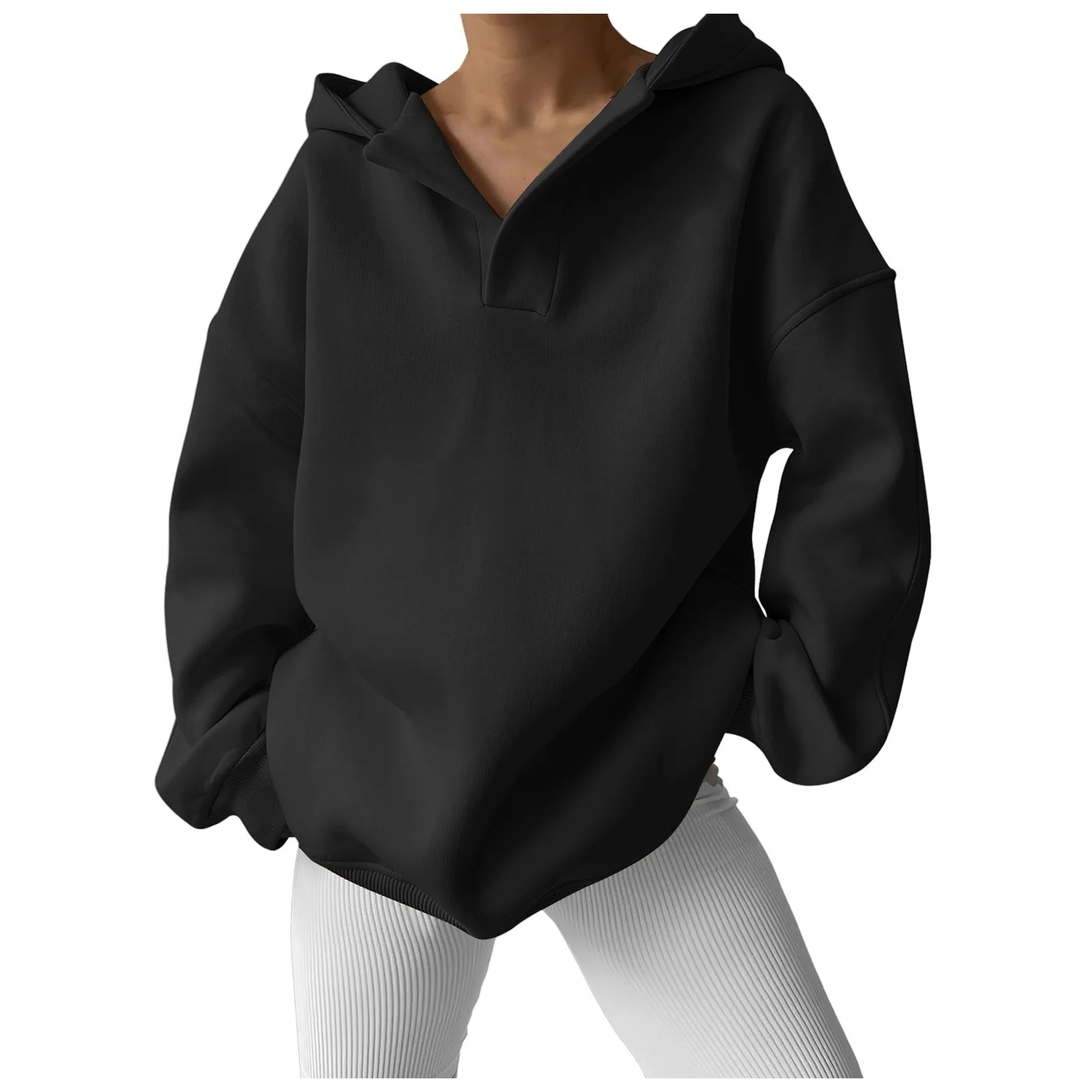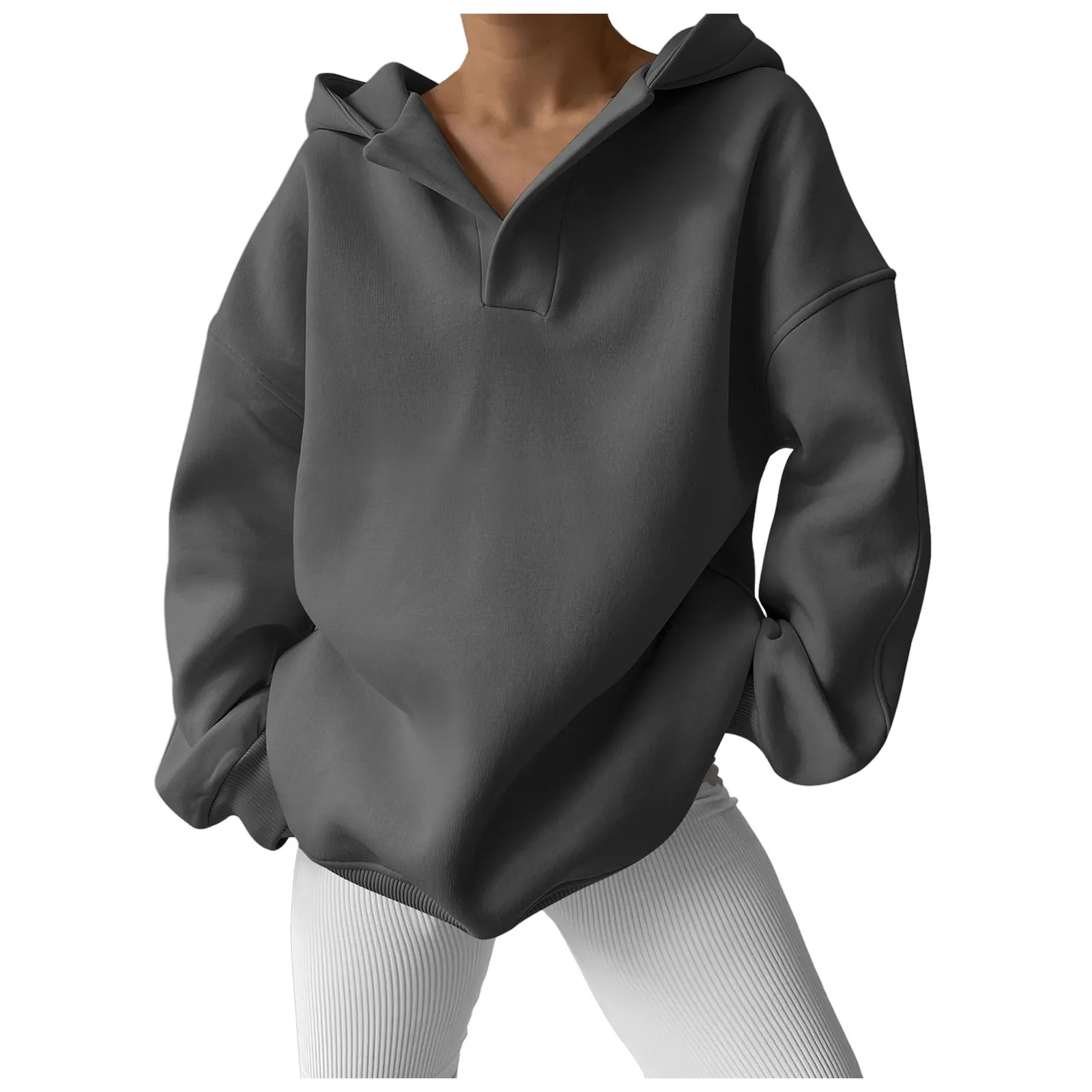 Women’S V Neck Oversized Hoodie With Pocket Fashion Trend Streetwear Classic Style Fleece Lined Sweatshirt Oversized Hoodie