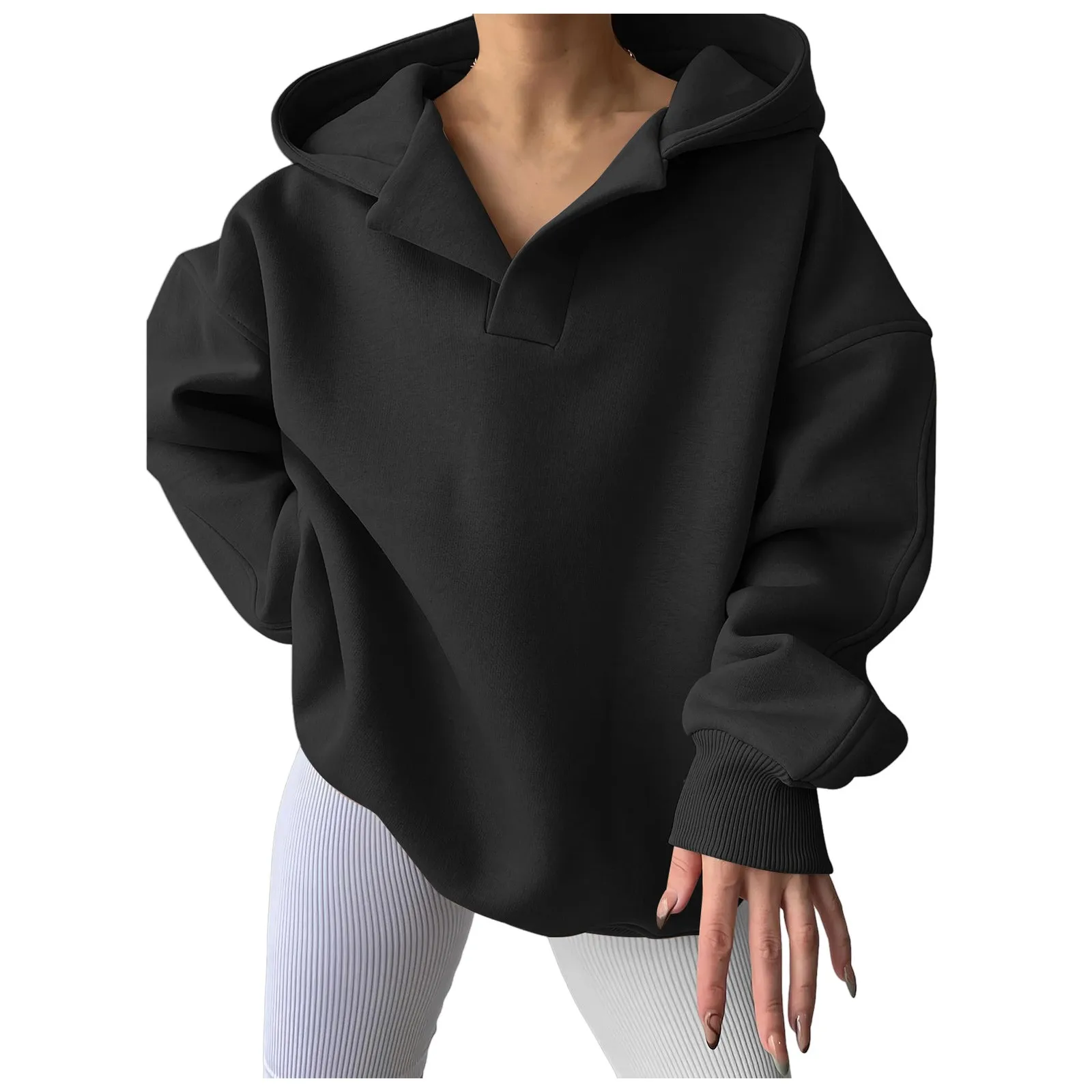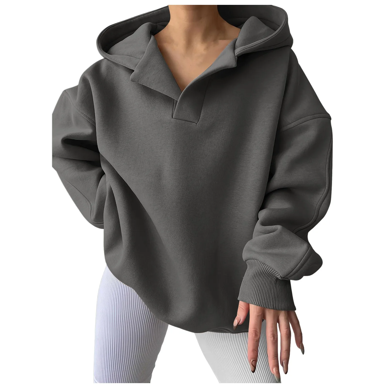 Women’s V Neck Oversized Hoodie With Pocket Classic Style Fleece Lined Sweatshirt