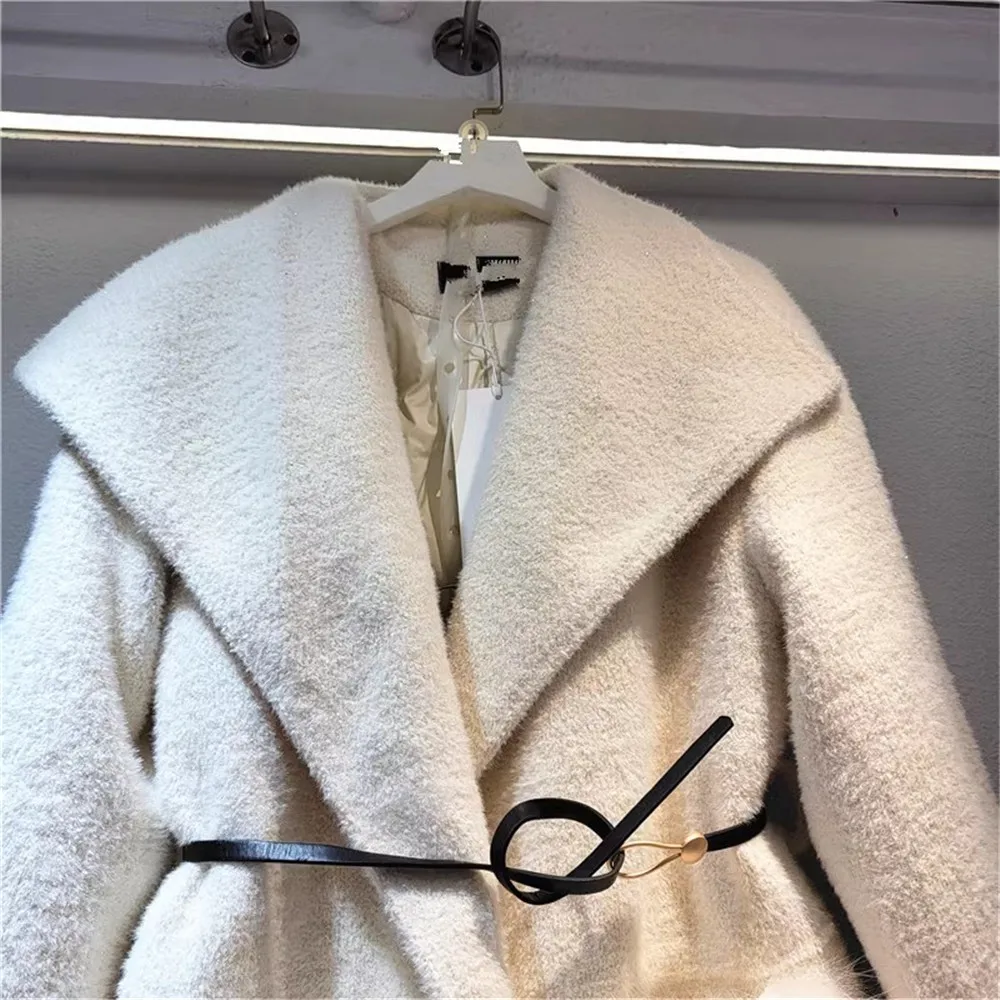 Woolen Coats for Women Thickened Down Liner Coat 2023 Winter New Elegant Lady Mid length Korean Loose Overcoat Y4691