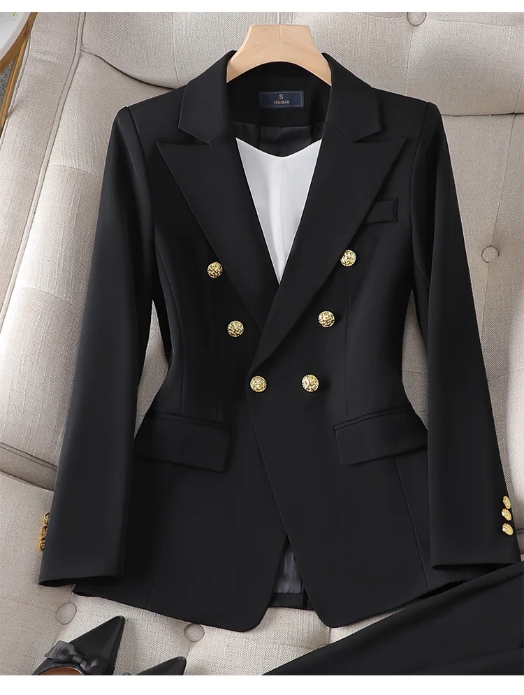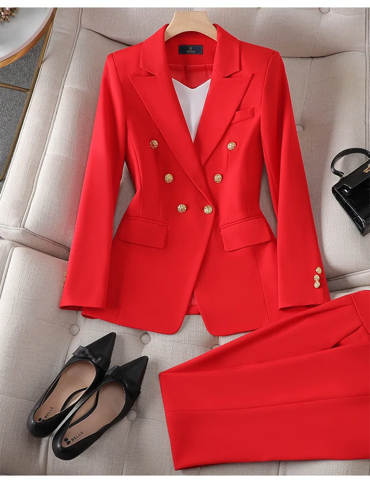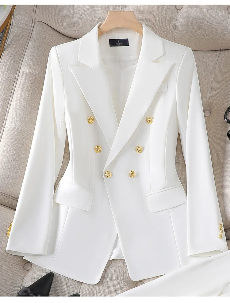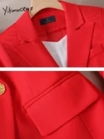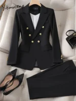 Yitimuceng Elegant Office Ladies Two Piece Sets Womens Outifits 2023 Double Breasted Long Sleeve Blazers Loose Casual Pant Suits